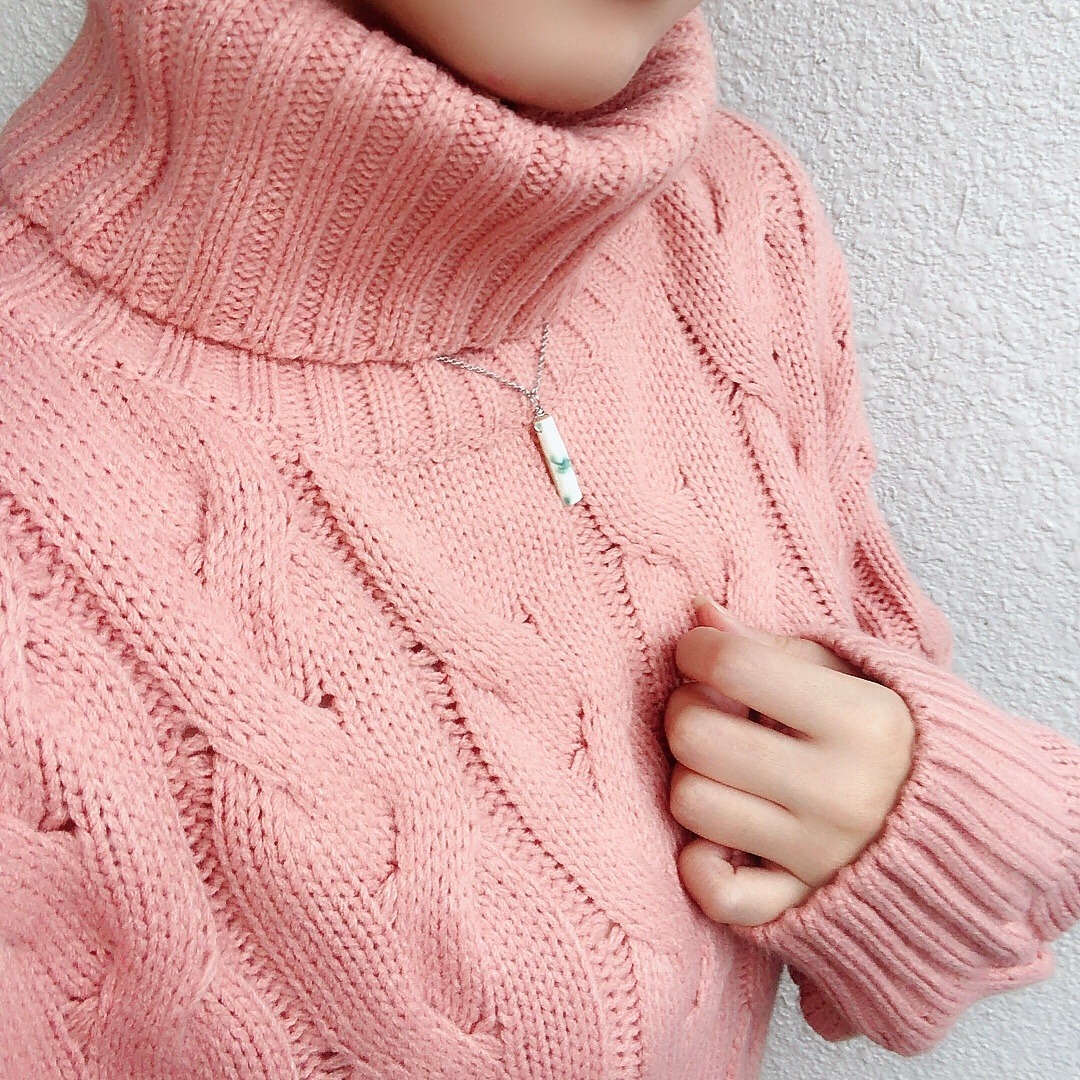 厚手のハイネックでも余裕の長さ。